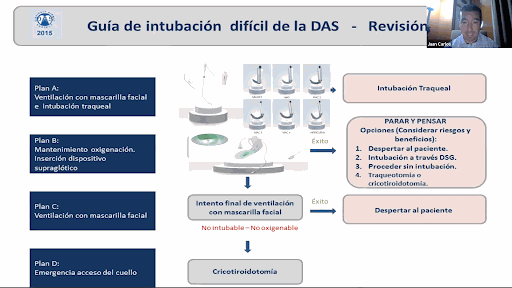 Recordemos que en este en este punto se hace mucho hincapié en la oxigenación al tú estarlo oxigenando y ver que tu paciente está estable no vas a tener ningún problema puedes realizar una intubación asistida por vídeo a través de este dispositivo y si tú ves que definitivamente no lo puedes ventilar ni con un supraglótico ni con mascarilla facial tú podrías llegar a un plan D